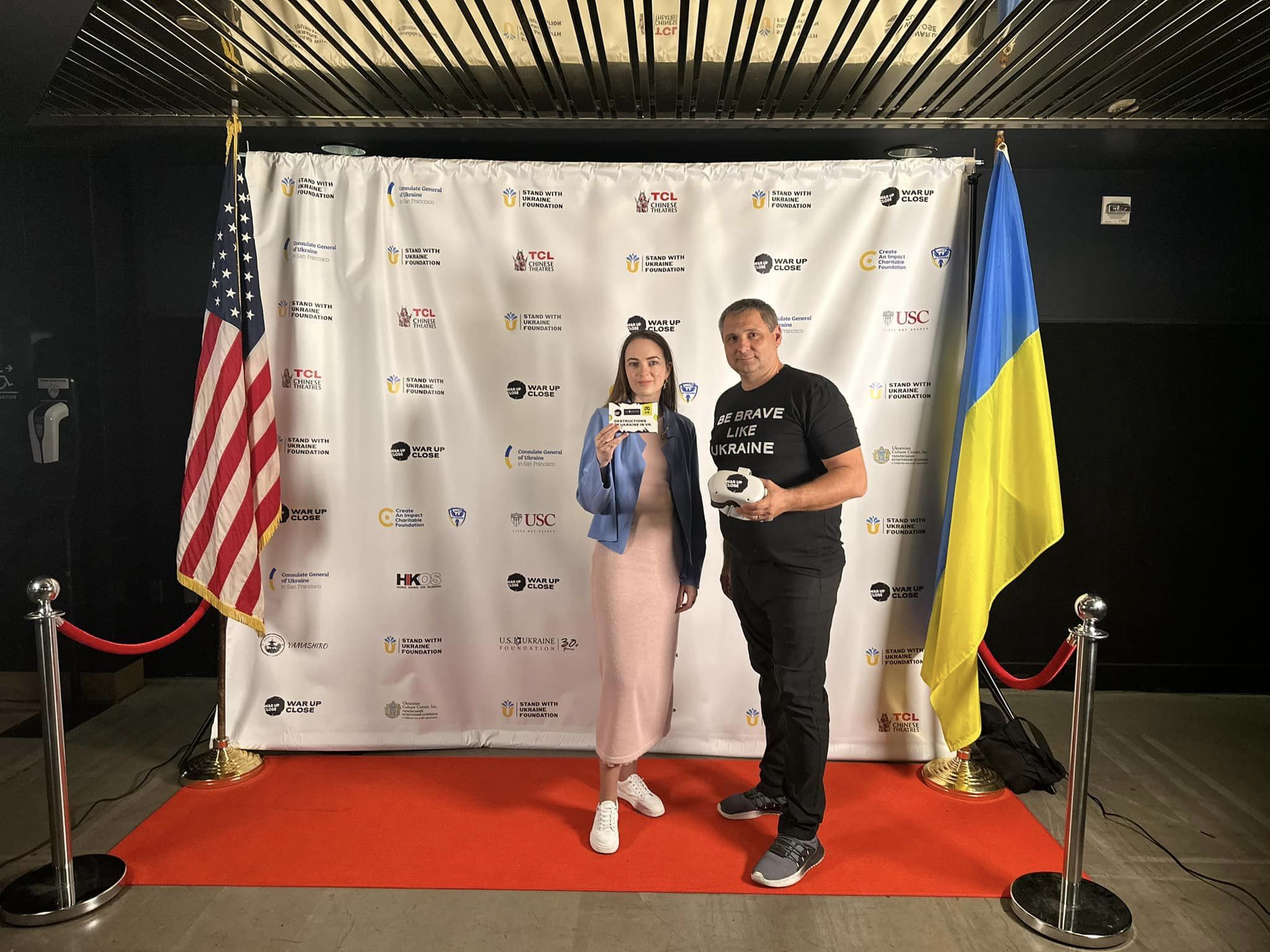On April 12, on the tenth anniversary of the announcement of the Anti-Terrorist Operation (ATO) in Ukraine, the “War Up Close” team once again presented their project in America. This time within the walls of the legendary Chinese Theatre, where Hollywood premieres take place. The exhibition took place as part of the Cultural Diplomacy program of the Stand With Ukraine foundation with the support of the Consulate General of Ukraine in San Francisco.