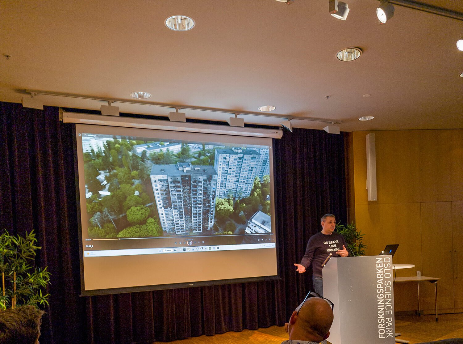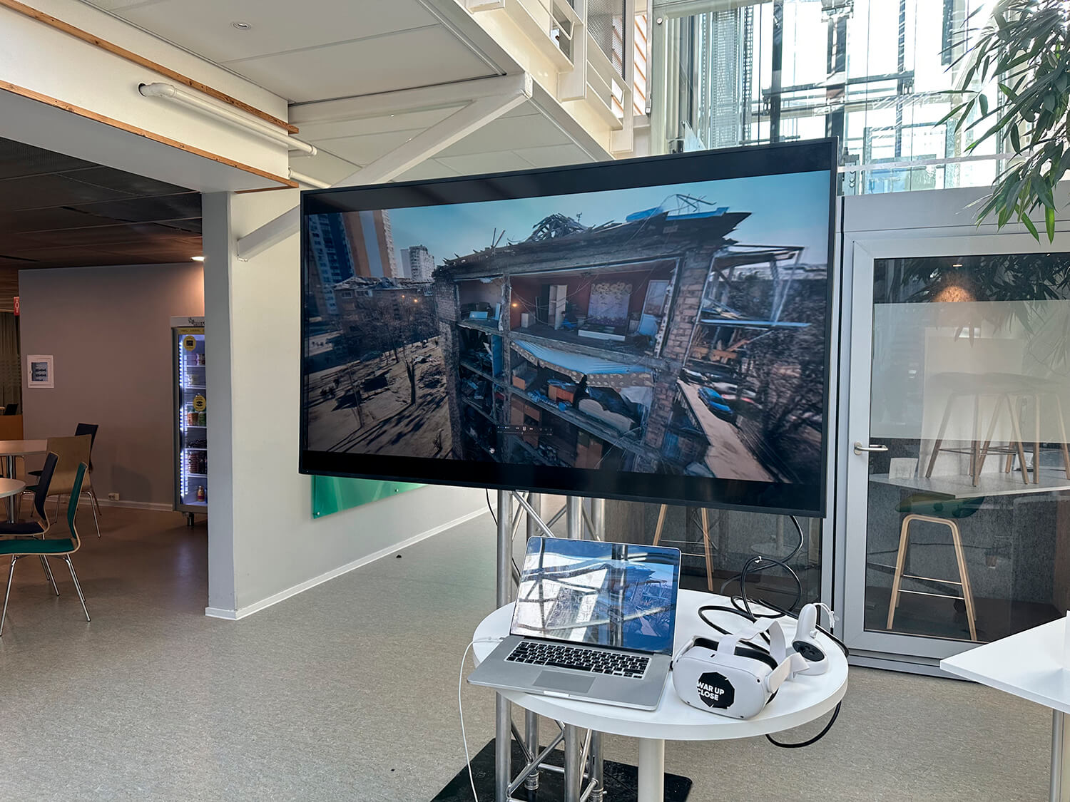On March 9th, Mykola Omelchenko, the photographer of “War Up Close,” presented our project at the international VR Oslo forum in the capital of Norway. The participants included leading professionals from the industry representing different countries worldwide, including speakers from NASA and the MARS space program. Mykola delivered a presentation of our project to an audience of over a hundred people, showcasing how we use VR technology to document Russian crimes on Ukrainian territory. The audience was pleasantly impressed by the quality of our work and the idea itself, as no one had done anything similar before. We received numerous positive feedback and offers of technical support.