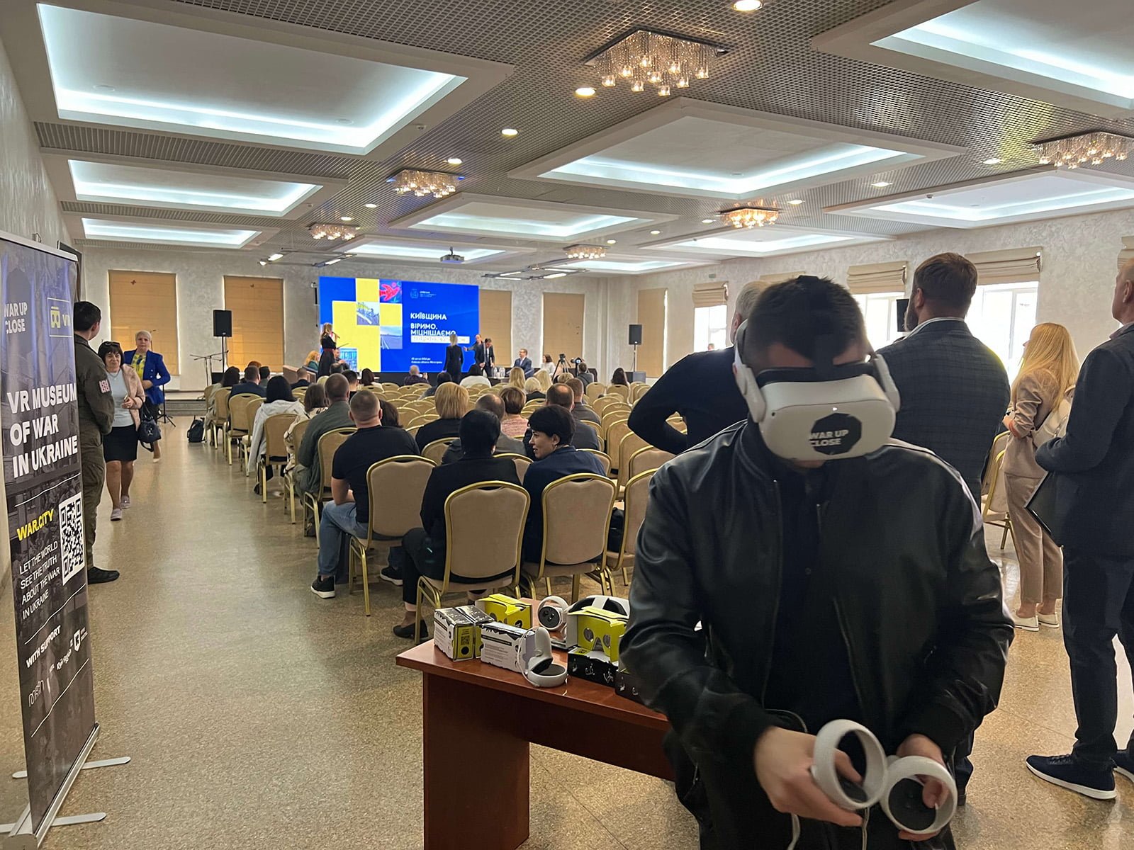 On April 2, “War Up Close” presented a VR exhibition at the Conference Hall “Irpin” as part of the Forum on the second anniversary of the liberation of Kyiv region. The event was held under the slogan “Kyiv Region. We Believe. We Strengthen. We Revive,” and gathered representatives of district administrations, communities of the region, charitable organizations, and international partners. The results of the panel discussions led to strategies for the region’s recovery in three key areas: