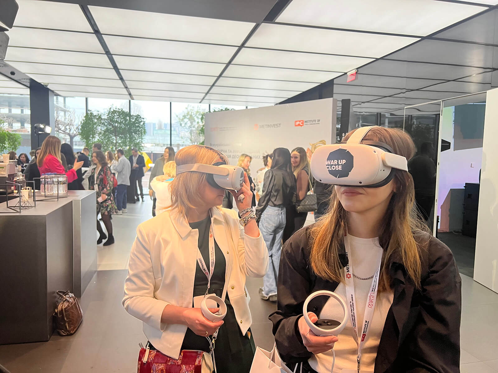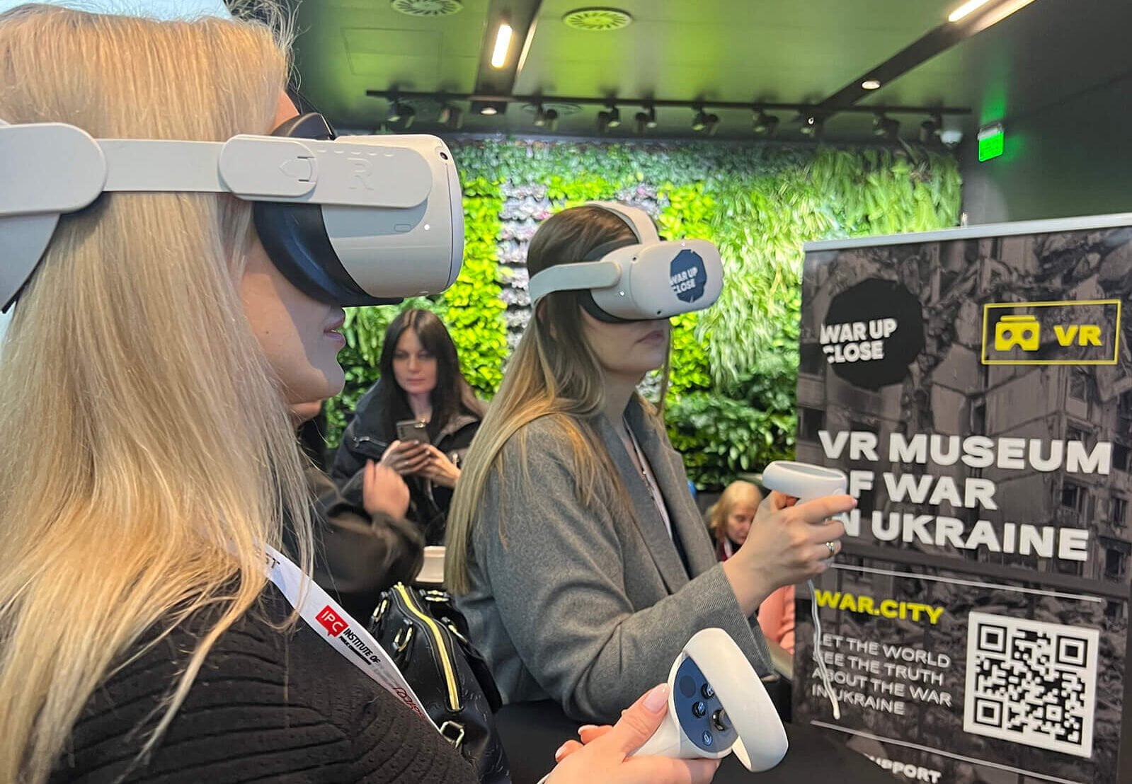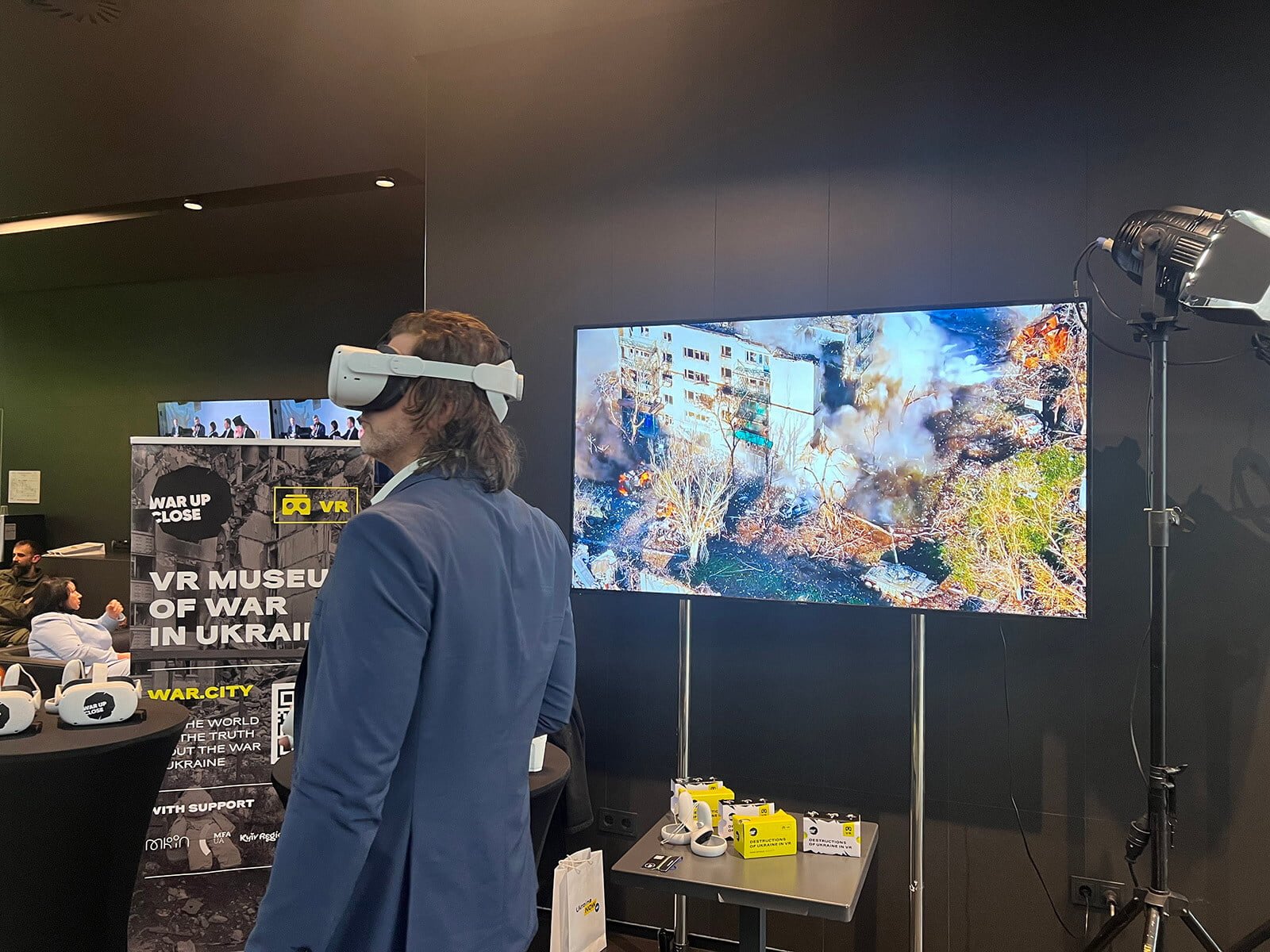 Forum guests could closely observe the consequences of Russian shelling on the cultural and civil infrastructure of Ukrainian cities at the “War Up Close” booth using Oculus and cardboard VR technology.