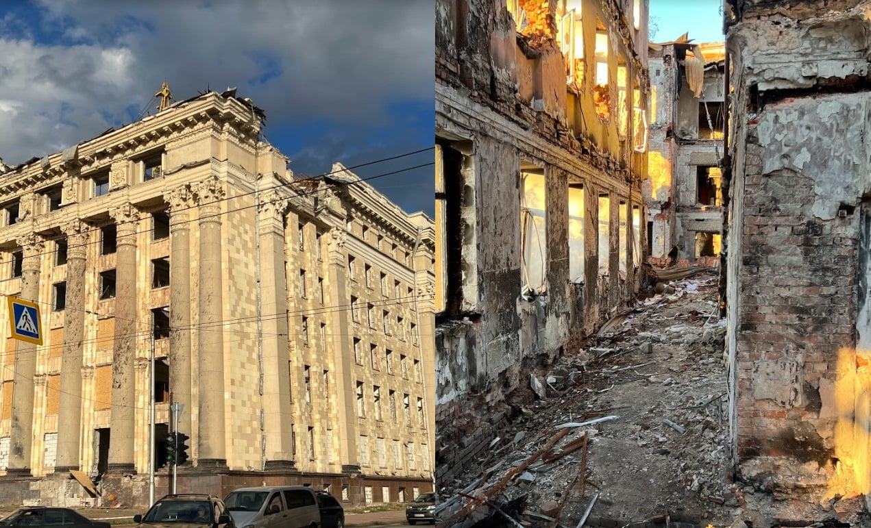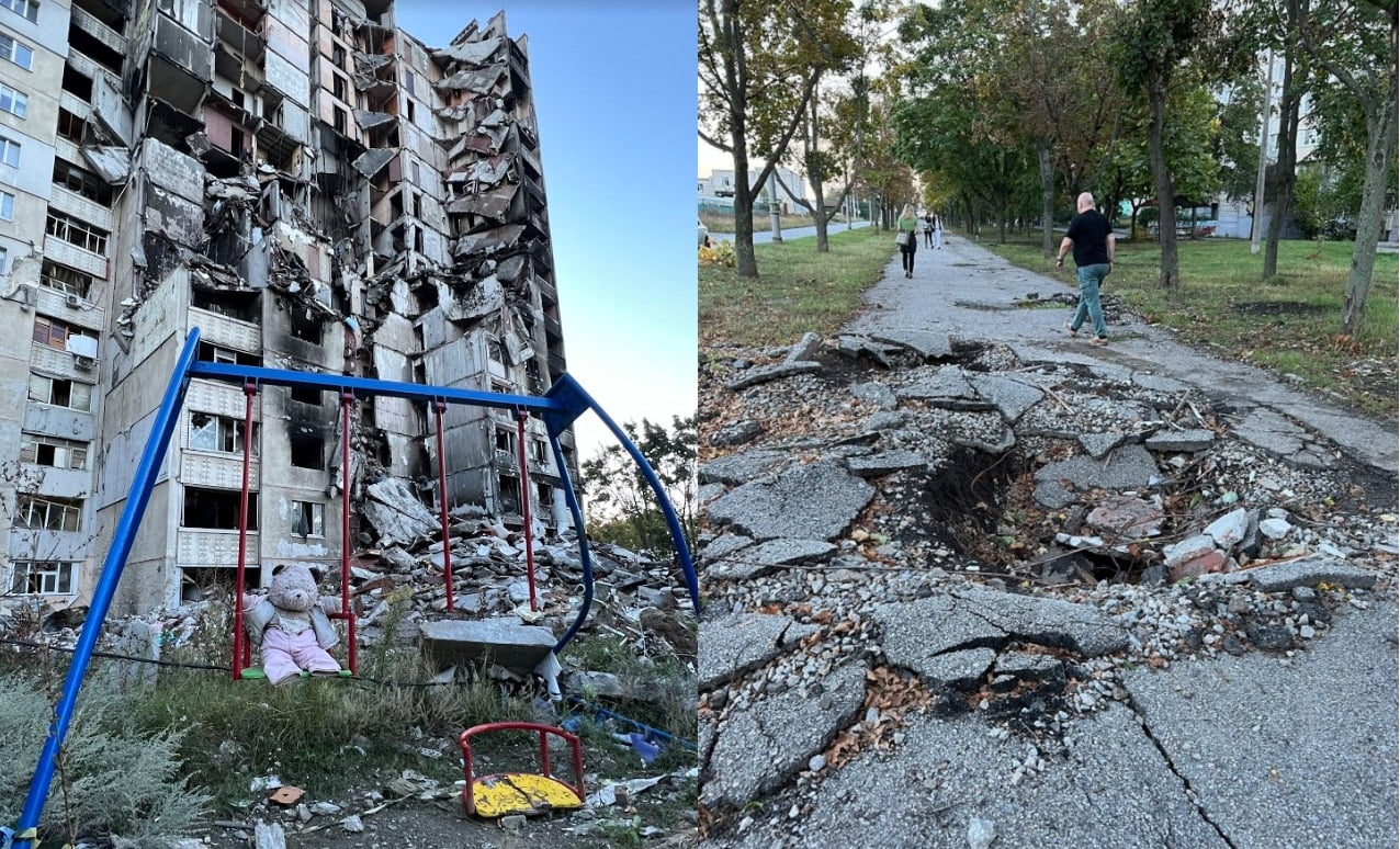 Станом на вересень 30% житлового фонду знищено, 150 тисяч харків’ян лишилися без домівок. Понад сотня садочків і стільки ж шкіл більше не почують дитячого сміху, бо їх зруйнували росіяни. Близько 50 медичних закладів не можуть функціонувати через обстріли. У частину із них уже ніколи не пррийдуть пацієнти, бо приходити нікуди. Але на тлі цього всього починається відбудова: працює транспорт, аптеки, супермаркети, ринки, частина бізнесу; попри проблеми з водою та електроенергією вивозиться сміття, проводять озеленення та розчищення міста.