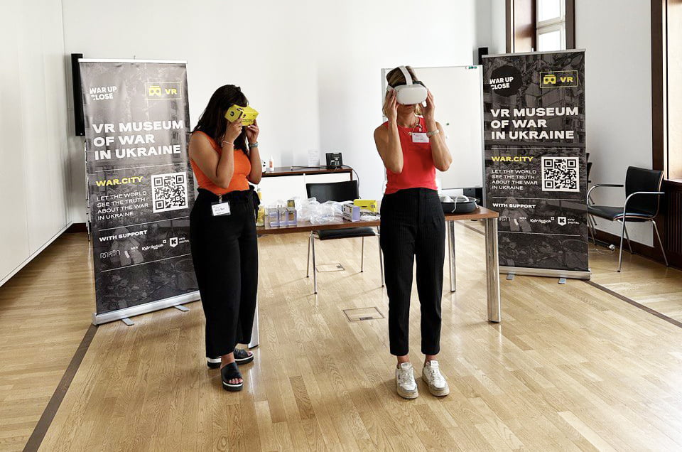 Цього разу за допомогою VR-окулярів, більше 100 учасників стали свідками військових злочинів росії та руйнувань вчинених на Київщині, Харківщині, Чернігівщині та у інших регіонах України.