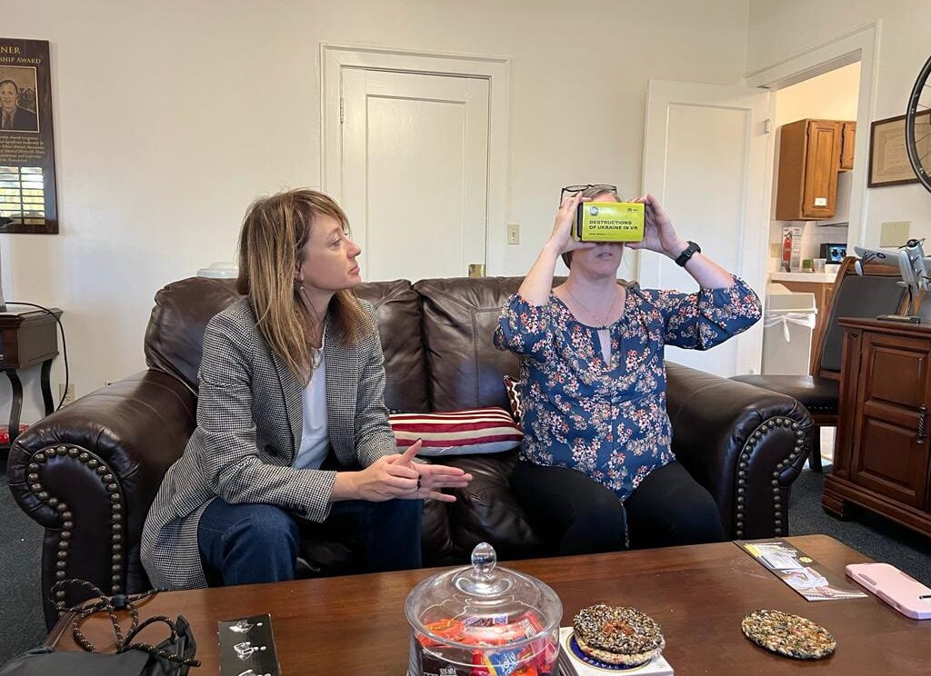 Ми розказали про проект та його учасників, як він зародився, в яких умовах створювався та в яких містах уже проходили імерсивні виставки. Також за допомогою 3D турів ми показали, масштаб російських злочинів в Україні і залишили університету кардборд «Війна впритул» в подарунок. Щоб іще більше людей могли побачити, якою війна є насправді для мільйонів українців.