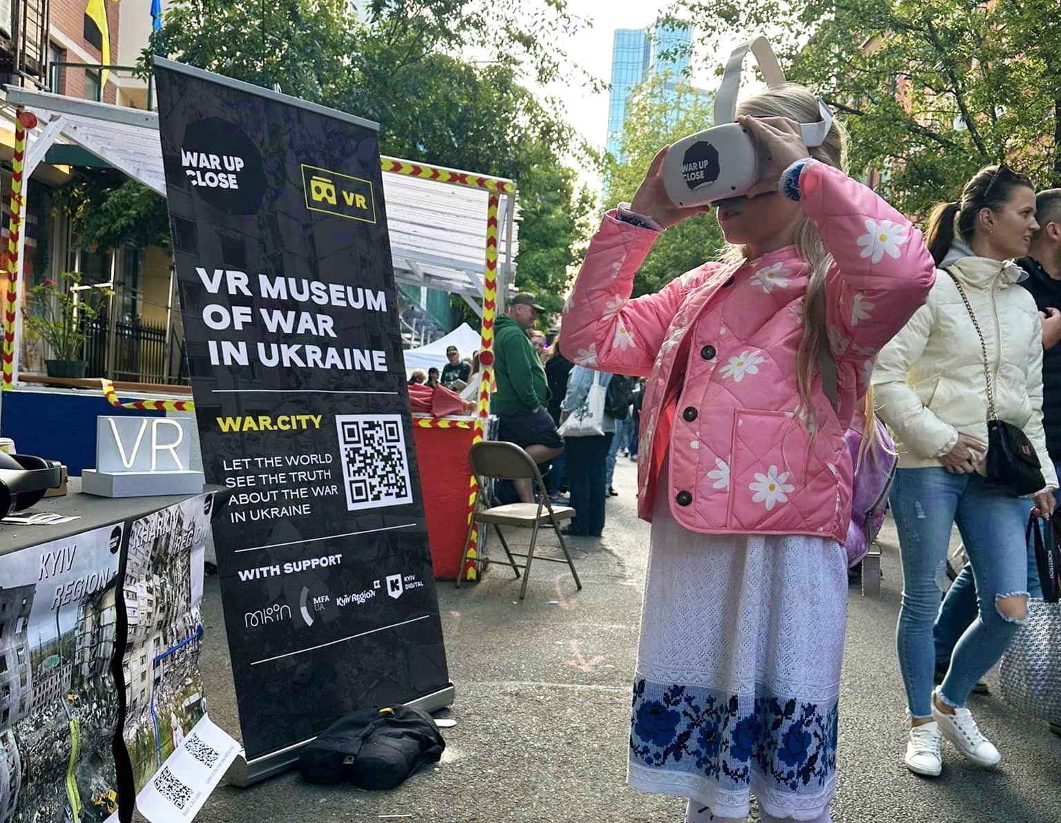 Стенд з нашими VR-окулярами викликав ажіотаж як серед дорослих, так і серед маленьких гостей фестивалю. Вшановуючи українську культуру і традиції, водночас ми показали, чим зараз живе наша країна і як виглядають її мирні міста після російських бомбардувань.