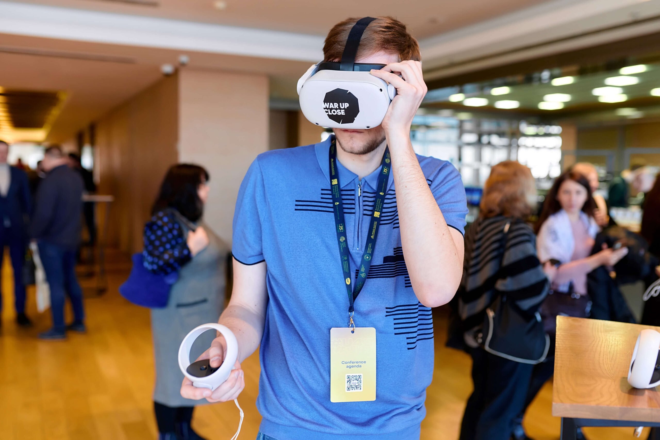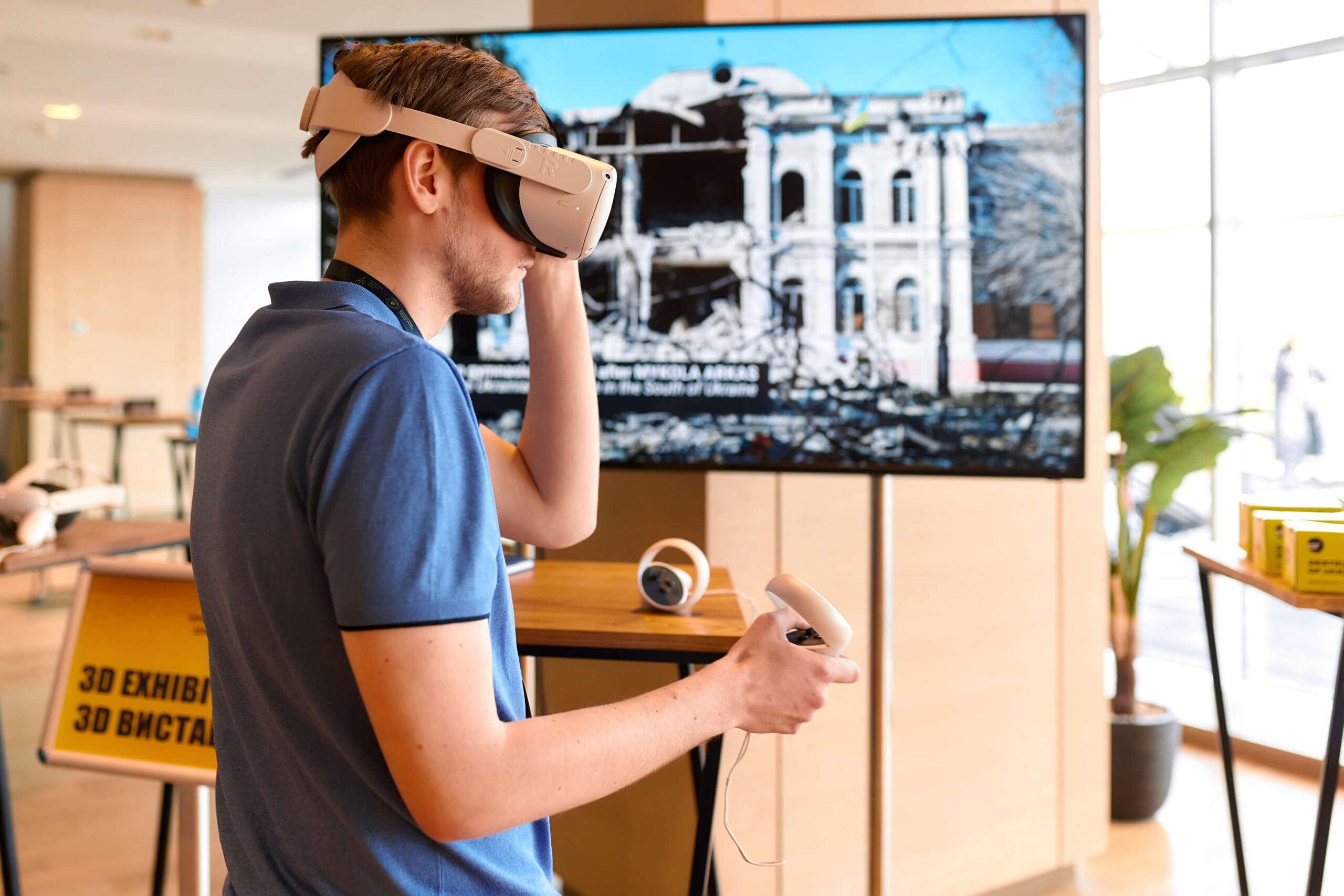 На стенді «Війна впритул» відвідувачі конференції за допомогою сучасних VR-технологій могли максимально реалістично побачити докази злочинів росіян на прикладі зруйнованих пам’яток Київщини, Чернігівщини, Харківщини та Сумщини.