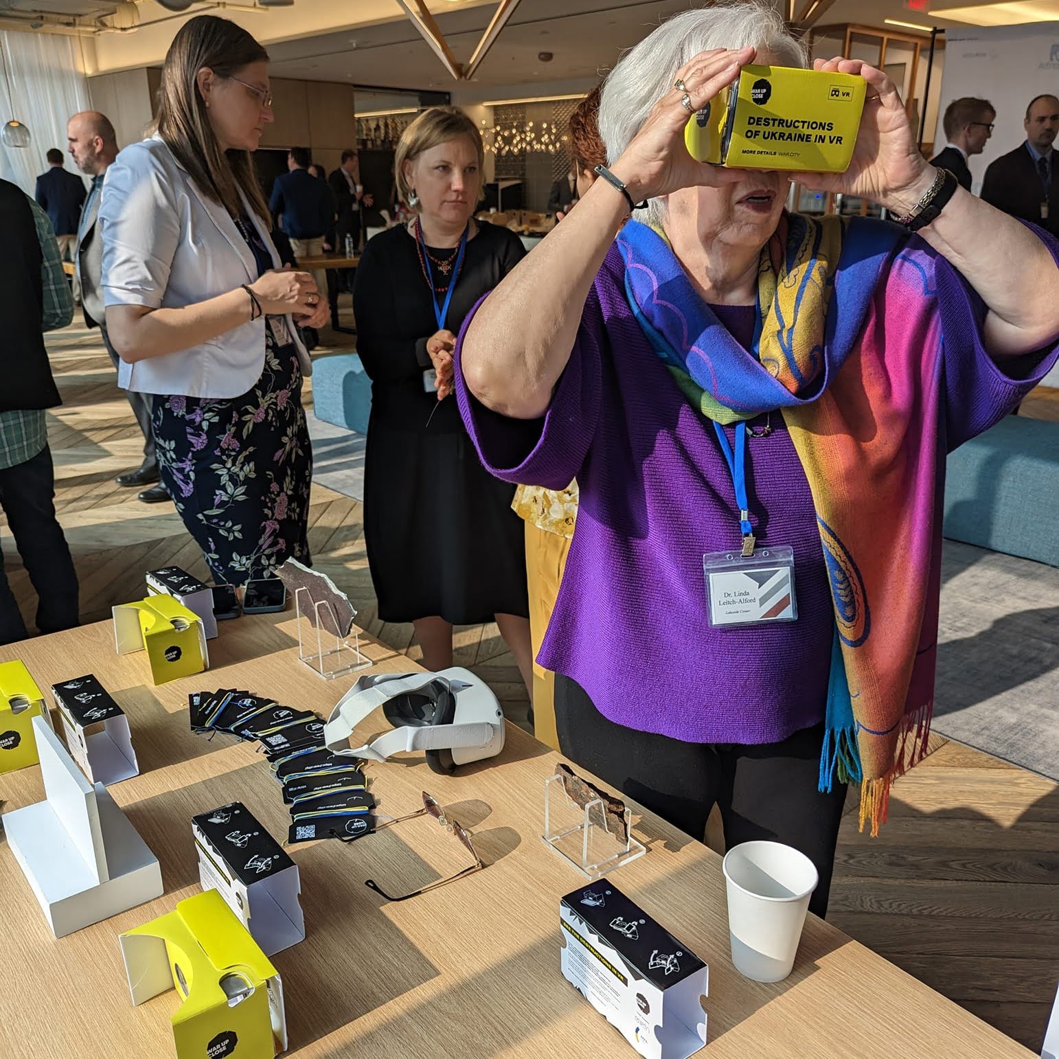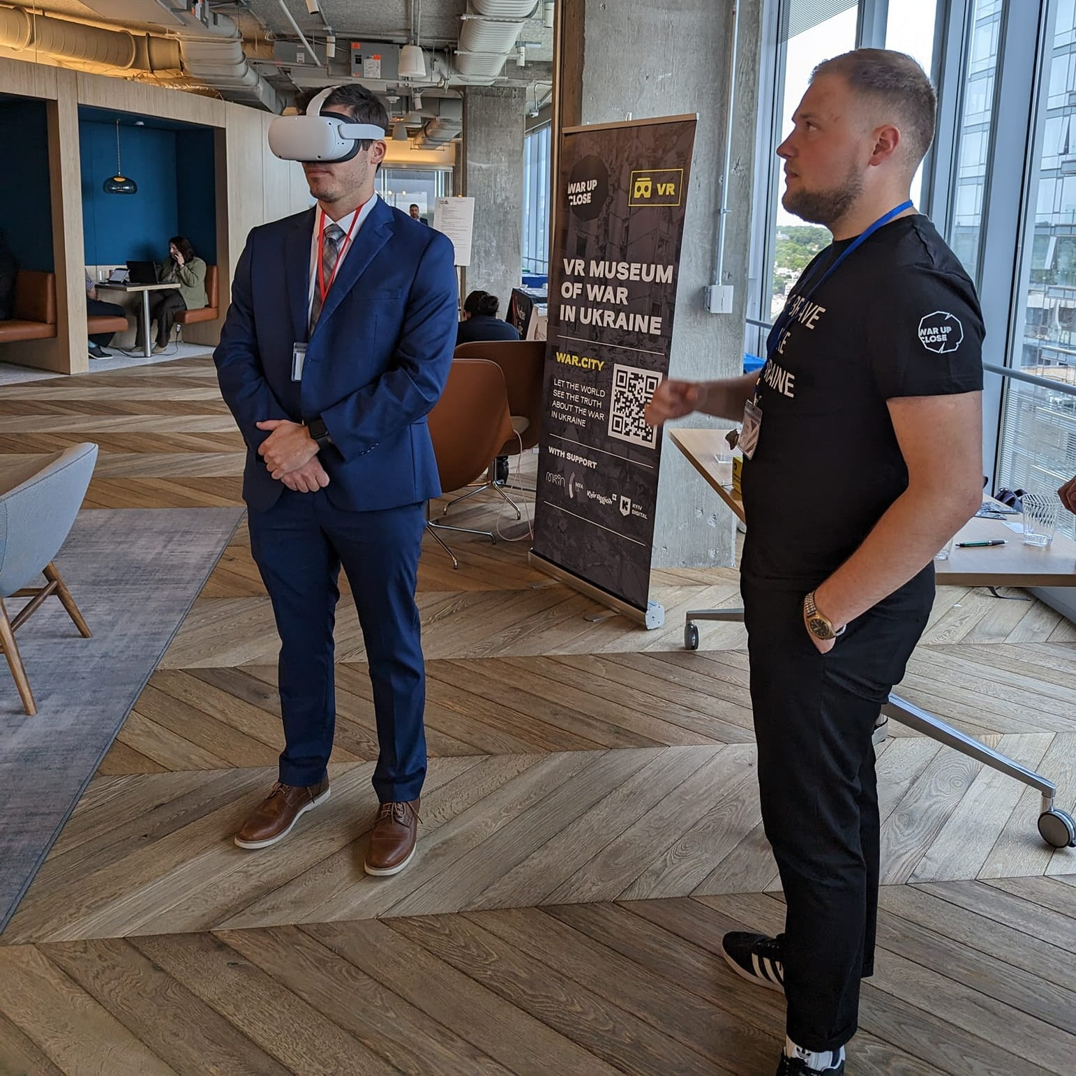 Завдяки VR-окулярам “Війна впритул” учасники заходу мали можливість побувати на місцях руйнувань, спричинених масовими обстрілами російськими загарбниками цивільної інфраструктури в Україні. Не лише конгресмени, представники неурядових організацій та професійних спільнот, але й колишні і діючі американські військові змогли краще відчути, що проживають військові і цивільні в Україні зараз.