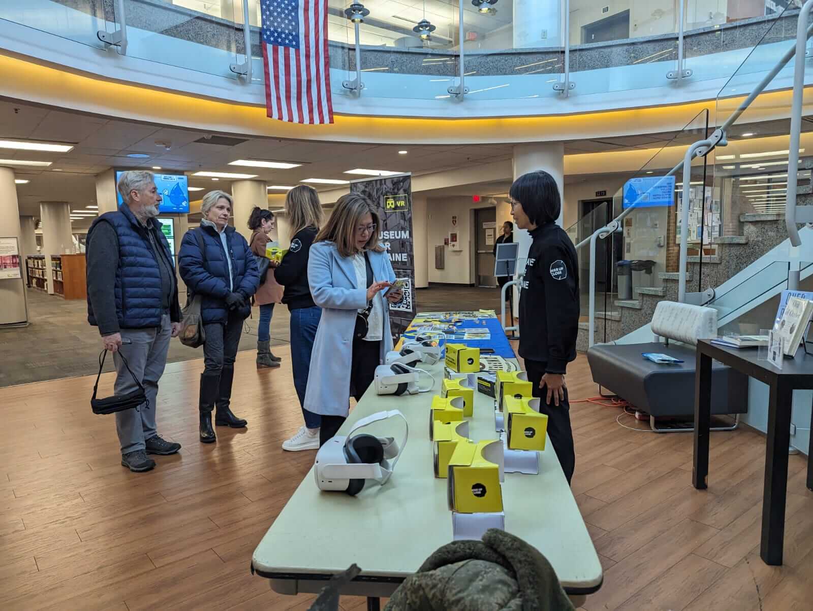 13 грудня команда «Війна впритул» провела чергову імерсивну виставку в рамках американського туру. Цього разу Юлія Матяш, Олексій Сивак та Winnie Huang представили проєкт у Бібліотеці Арлінгтона.